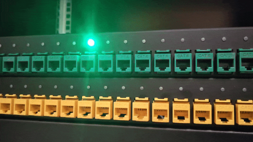 The SQID 2 patch panel uses green LED lights to instantly show active & inactive ports, eliminating manual cable tracing. This speeds up setup, maintenance, and troubleshooting by replacing guesswork with a clear visual guide.